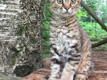 In 2012 we bought our first registered Mohave bobtail and Desert Lynx. Later adding in our highland lynx and munchkin kittens. We have had beautiful litters with outstanding color patterns and unique mutations ranging from Poly feet ,bobtails ,curled ears, short/ tall legs ,curly fur and whiskers. And kittens that speak for themselves with their confident playful sweet personalities and adorable coats.